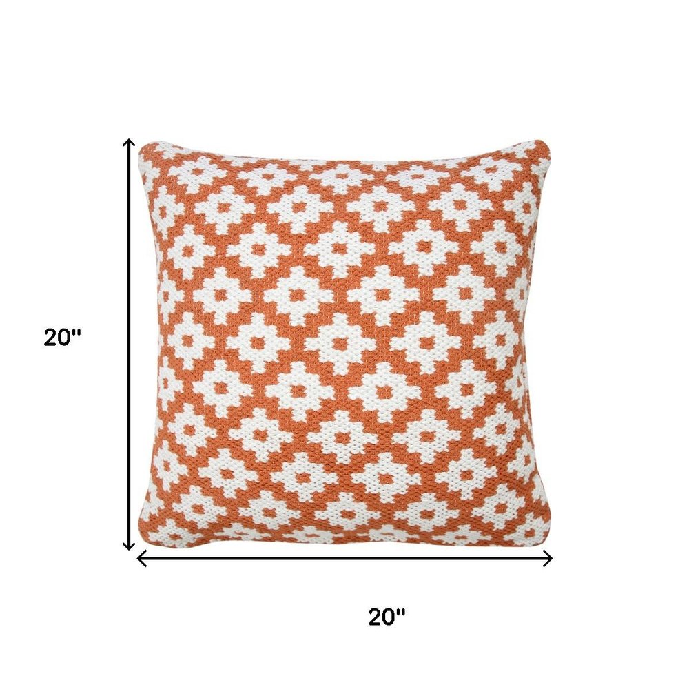 20" Orange And White Geometric Cotton Blend Throw Pillow Cover