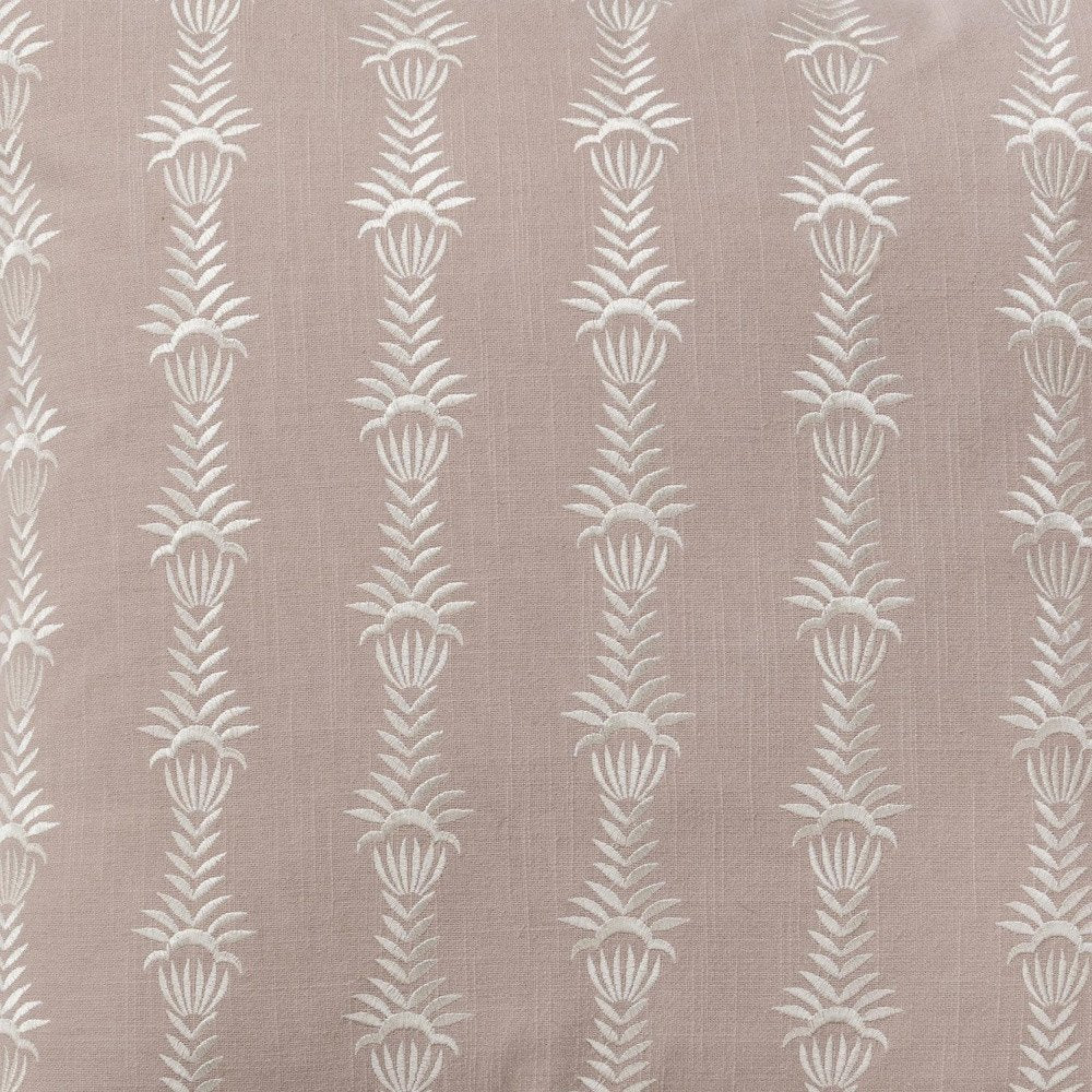 20" Pink and White Cotton Throw Pillow With Embroidery