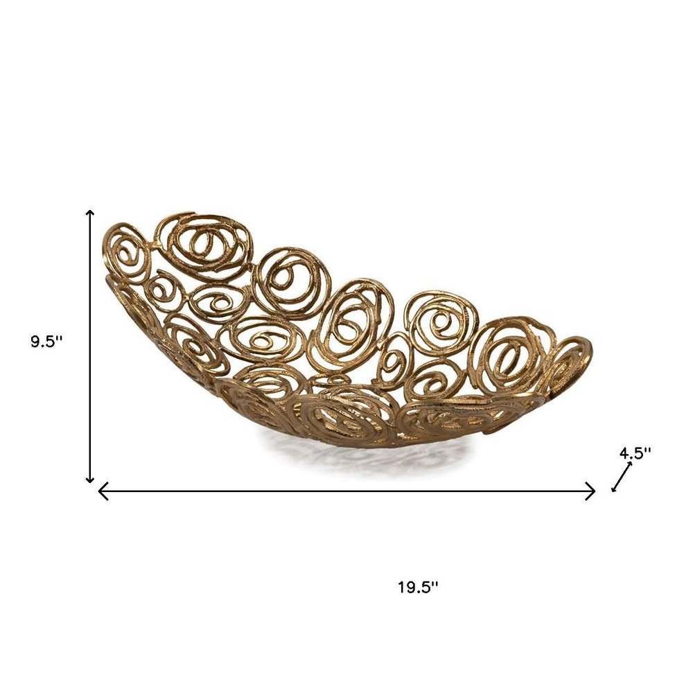 The 20-inch silver aluminum abstract circles oval decorative bowl is the perfect decorative accessory for your home. A perfect decorative addition for anyone who loves a stylish look and feel. Hand finished with care, this modern sculptural bowl blends elegance with artistry effortlessly. Its abstract swirling circles design complements a variety of decor styles, making it versatile for any room. Crafted from durable and textured cast aluminum, it promises longevity while enhancing your space. This decorative bowl serves not only as a stunning focal point but also as a conversation starter for guests and family alike. 4.5-inch h x 19.5-inch w x 9.5-inch d.