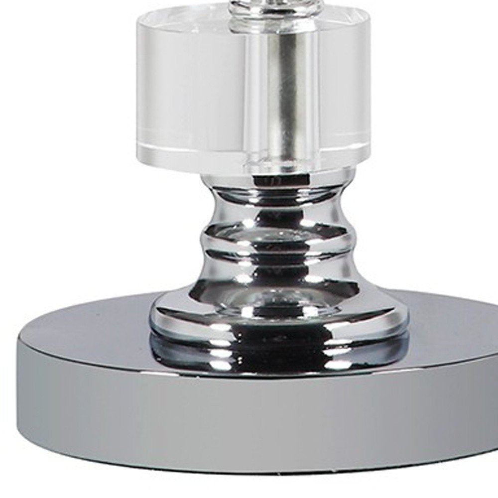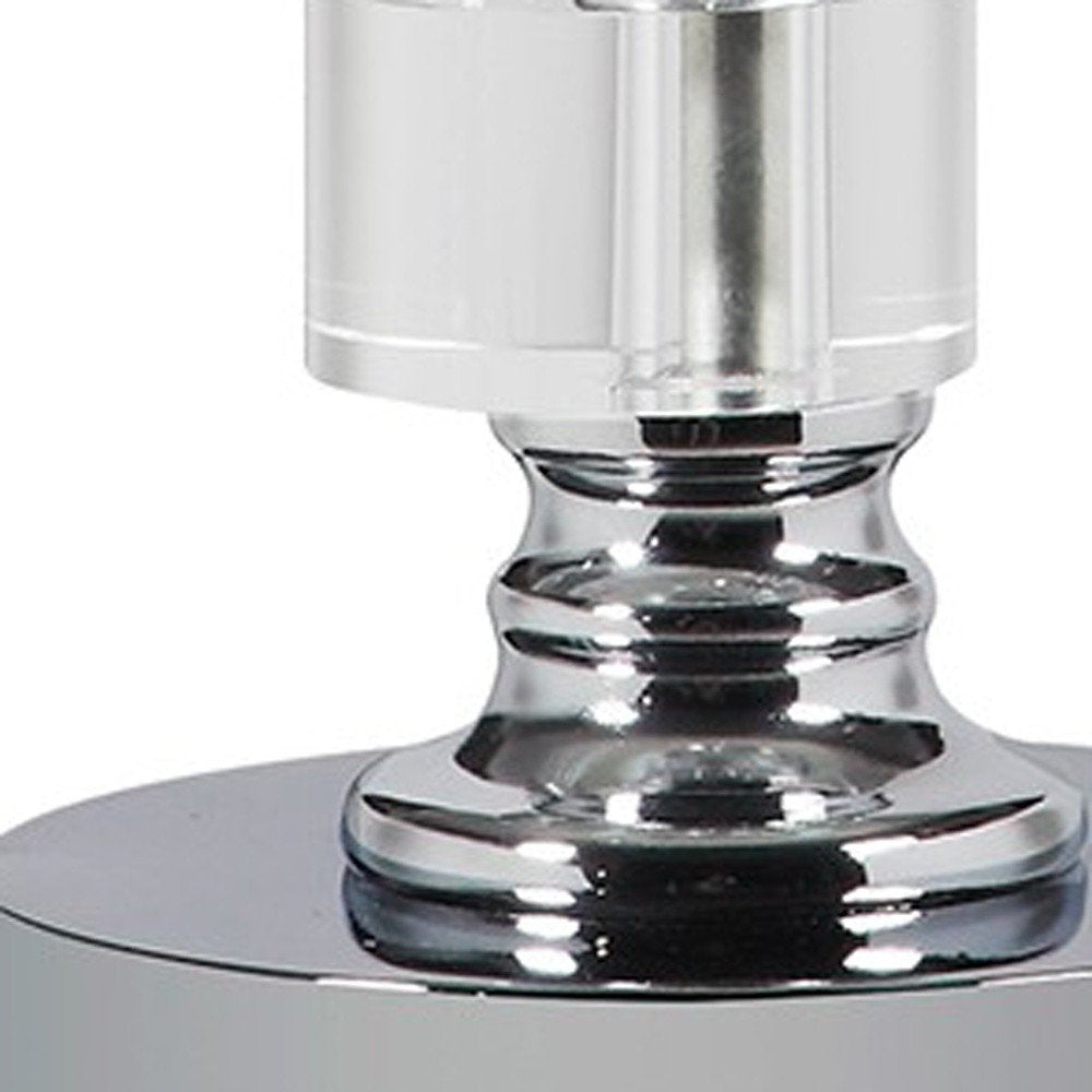 This 20" silver crystal stacked geo cubes table lamp with white classic empire shade is a great way to add some brightness to any corner of your home. The lamp is made of sturdy crystal and features a clear and silver coloration and geometric design that gives off an updated contemporary vibe. color. The lamp light itself is covered by a fabric, classic empire shaped shade, making this a classy piece that will complement most any interior. Bedside table lamps help to add a soft and cozy glow to your bedroom. Great for evening reading! The light that this lamp throws is soft and warm to elevate the look of most any space in your home. It is perfect for virtually any decor. 20" H x 12" W x 12" D