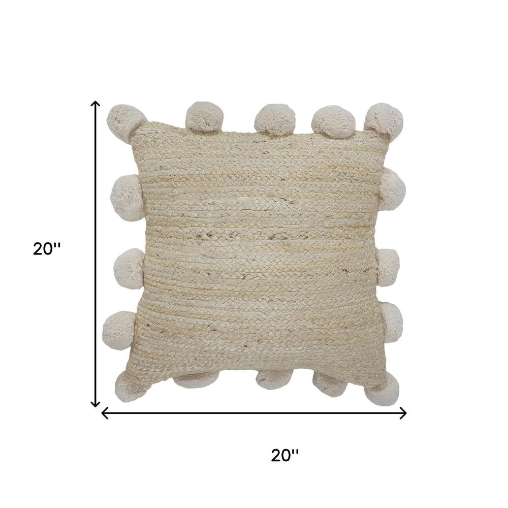 20" Tan And Brown Cotton Blend Throw Pillow Cover