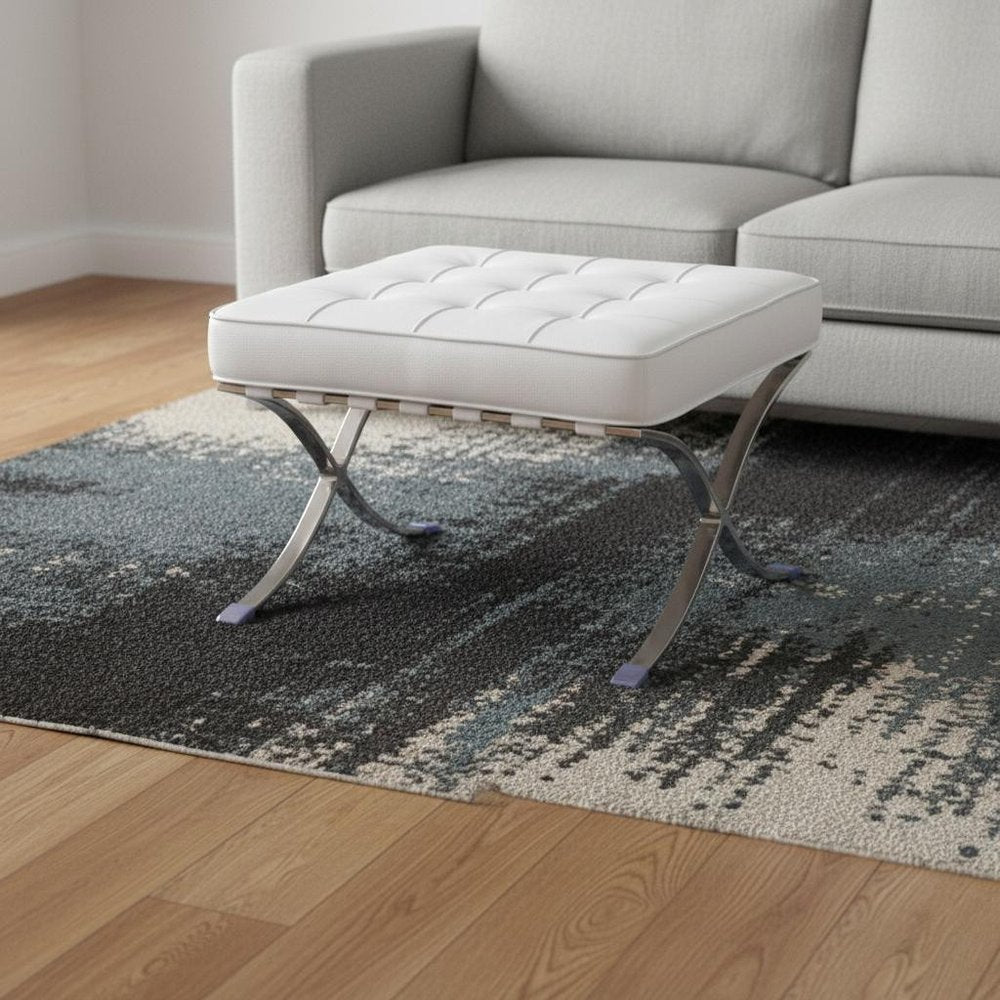 Optimize your space and add some charm to your room with the 20-inch white and silver leather tufted ottoman. The genuine, top-grain, leather upholstery top of this ottoman is a striking contrast to the shiny "X" shaped metal frame. The button tufted stitching gives this ottoman a classic and rich design sense that will take your room to the next level. Easy to blend into most any room, a ottoman is a way to add a good looking accent to your space that can also be practical and useful. 17.72-inch h x 20.47-inch w x 24.80-inch d.