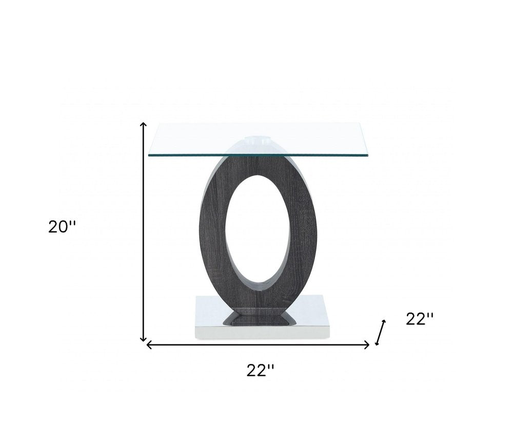 Distinctive in style the 20-inch white, grey and clear glass oval end table radiates a versatile charm. The white, grey coloration of the high quality solid and manufactured wood base marries nicely with the clear glass top. Side tables are a great way to flank your sofa, use as an accent next to your favorite chair, or can even be used bedside. You can also use it as an entryway table to hold your keys. 20-inch H x 22-inch W x 22-inch D