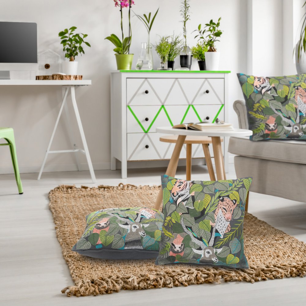 Add an air of fashion to your room and rejuvenate the space with this cute and fashionable 20" x 20" gray salmon and green 100% cotton animal print zippered pillow. Soft and textural gray salmon and green 100% cotton has been used to make this pillow look and feel like a real treasure. Decorative throw pillows not only add color and dimension to your space but can be comfy and supportive when you are lounging and cuddling as well. Decorative pillows are a great way to change up the look and feel of your space easily and quickly. 4" H x 20" W x 20" D