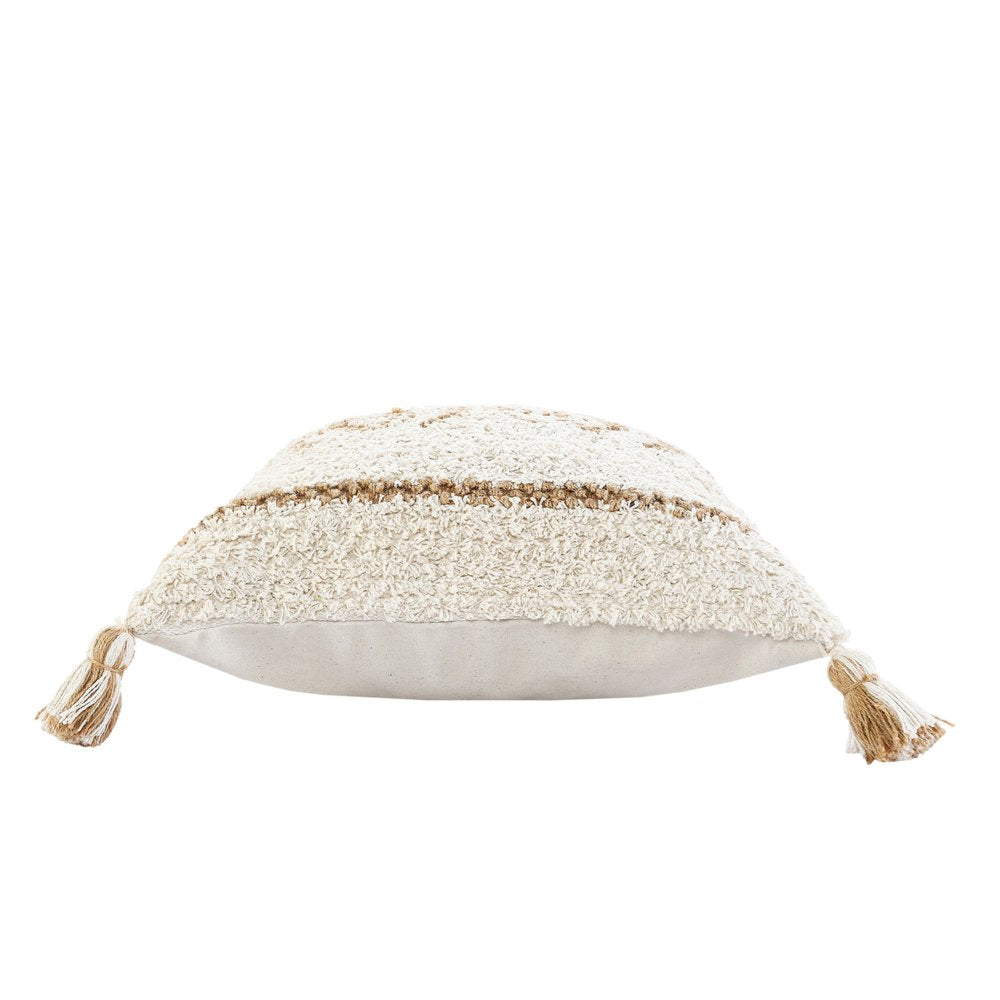 The 20" x 20" white and tan 100% cotton geometric zippered pillow is the perfect decorative accessory for your home. This super soft decorative pillow is expertly made of high grade, long lasting 100% cotton in a white and tan coloration. Great to use on its own or mix with other decorations for the perfect look. A great decorative accessory for your favorite chair, to accent your sofa, or to use as part of your bed ensemble. 4" H x 20" W x 20" D