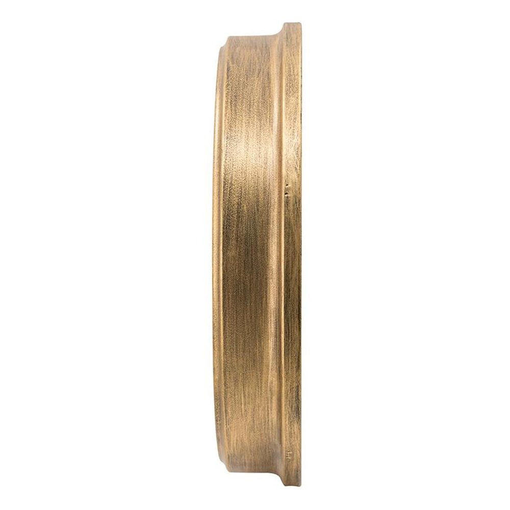 This 21-inch circle black and gold wood and glass analog exposed gear wall clock includes three moving hands on the face that move smoothly to indicate the hour, minute and seconds. The circle shape of this clock will bring a sense of wholeness to your home. The clock face not only looks good but is beautiful and uniquely made from glass. This clock was skillfully made with a purposefully distressed and vintage style finish. Elevate the decor of any room in your house. With its unique design and practical purpose, this clock will add flair to your home while also acting as an essential tool. 20.9-inch H x 20.9-inch W x 3.5-inch D