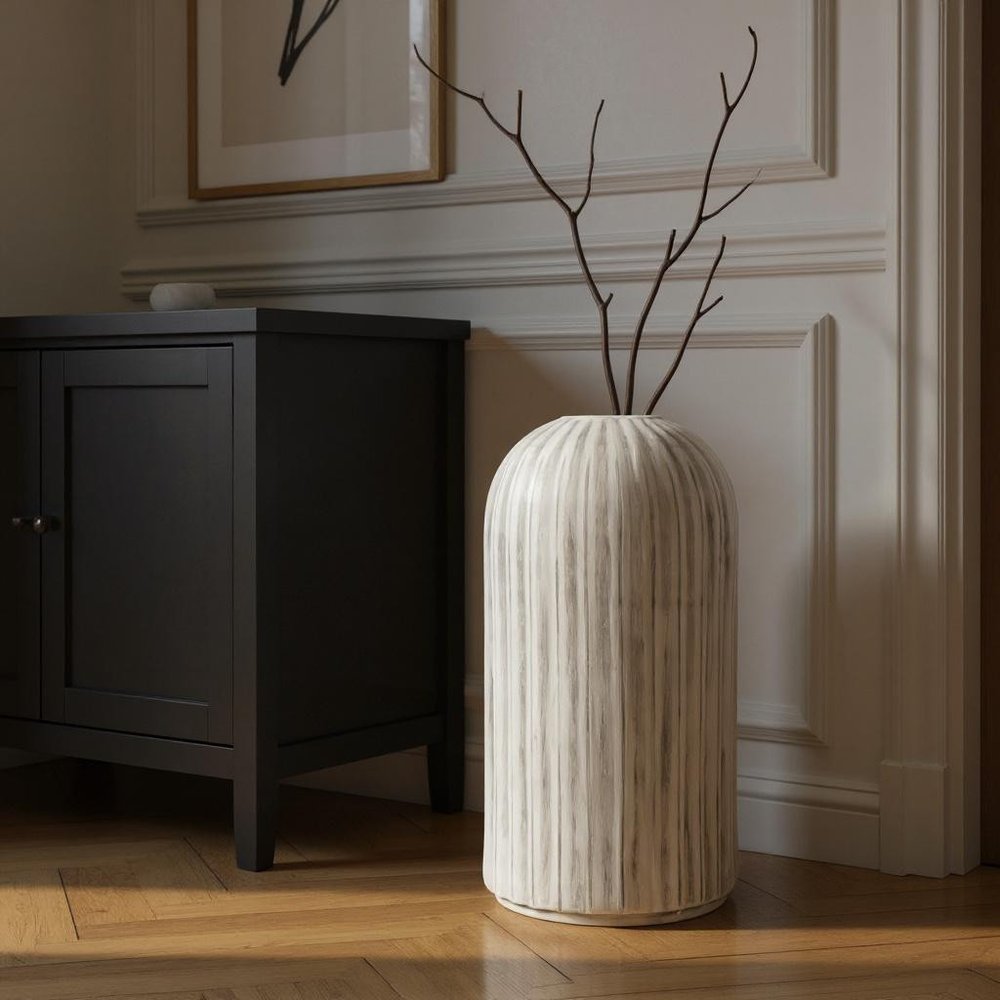 Ideal for displaying fresh or dried flowers, it effortlessly elevates your home ambiance. This floor vase boasts a sleek cylindrical shape that complements a variety of decor styles. Made from high-quality ceramic, it adds a touch of elegance to any room. Its watertight design ensures it is perfect for both floral arrangements and standalone decoration. With its versatile aesthetic, this vase serves as an eye-catching centerpiece or a charming accent piece. Enhance your living space with this striking piece that merges functionality with sophisticated artistry, making it a must-have for any home. Let this vase inspire your creativity in floral design and decor. 21.26-inch h x 10.25-inch w x 10.25-inch d.