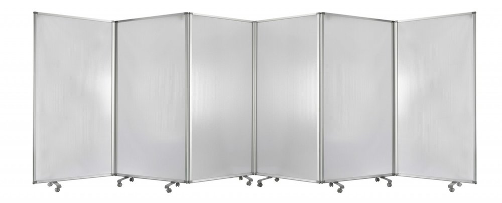 The Screen is a 6 panel accordion style room divider with wheels that can be used to easily separate your space. Includes high quality fabric finish on both sides. Easily connect several screens together to create a larger room partition. Not only is this a functional screen but it also adds some style to any room. Use your divider as a freestanding room partition, temporary wall, sound barrier and much more!