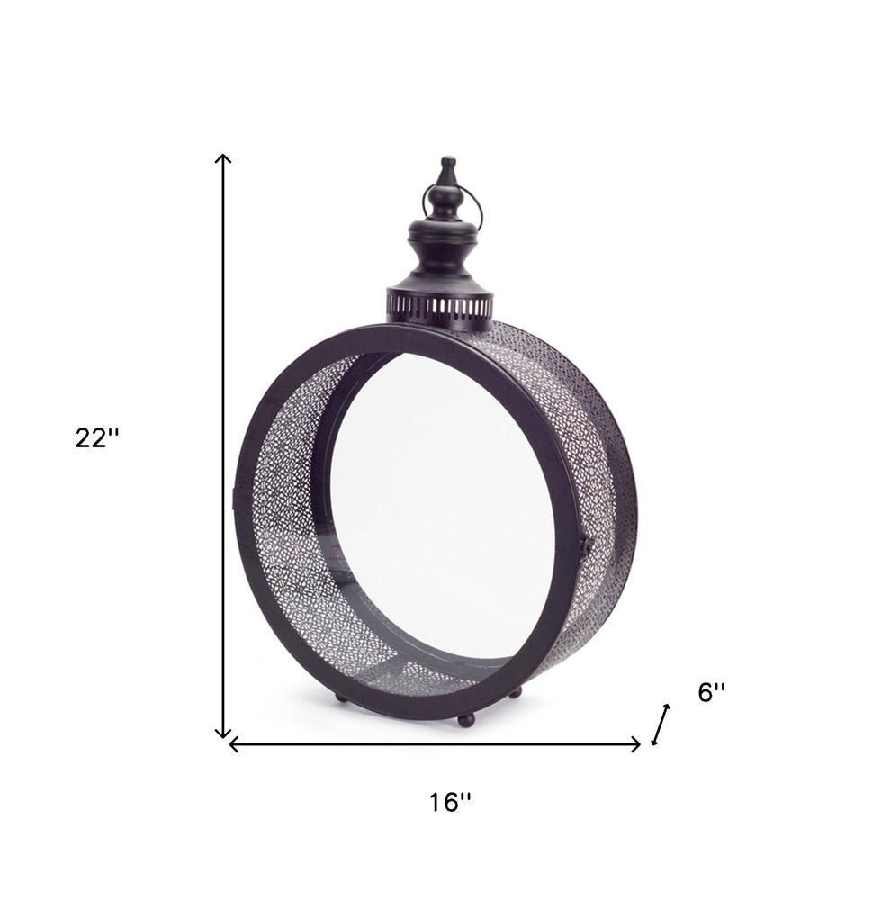 22" Black Distressed Ornate Metal Floor Lantern Candle Holder