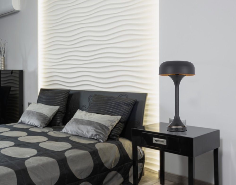 With this 22-inch black metal two light novelty usb table lamp with black dome shade you can bring in design to any space along with adding some ambient lighting. The lamp is made of sturdy metal and features a black color. The black shade has a unique mushroom cap inspired dome shape and is made of metal, which makes it a perfect choice. Bring some lite and good vibes into your space with this updated and stylishly designed lamp. 22-inch H x 12-inch W x 12-inch D