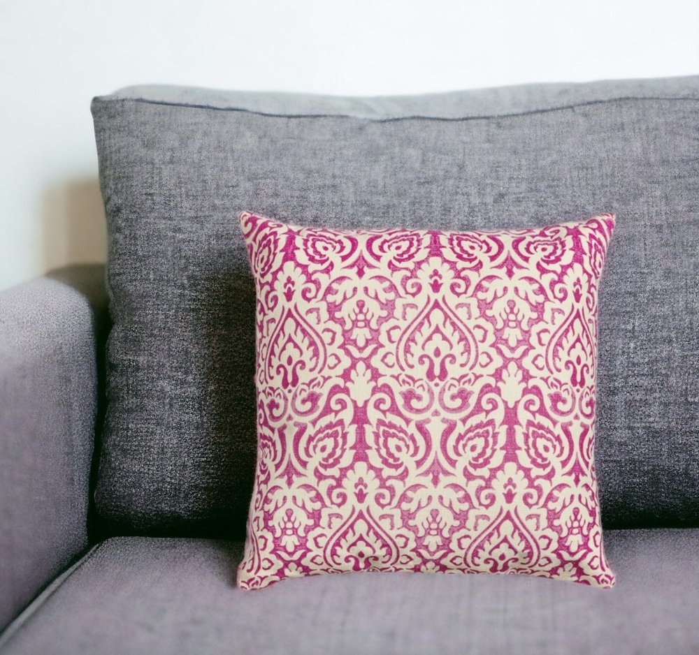 This 22-inch blue and natural damask cotton throw pillow will add a beautiful decorative accent to your decor. A casually chic color combination and timeless classic patterning make this decorative pillow easy to assimilate in with your other decor. This soft polyester filled pillow not only is decorative but made to be comfy and cozy all day long. Decorative pillows are a great way to change up the look and feel of your space easily and quickly. A great decorative accessory to add color and dimension to your favorite chair, accent your sofa, or to use as part of your bed ensemble. 22-inch h x 22-inch w x 6.25-inch d.