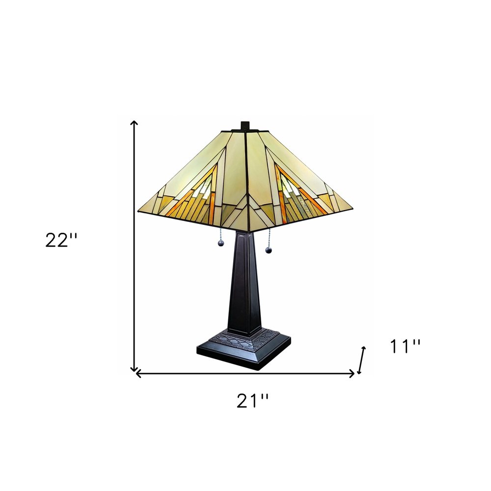 Embrace the good life with this hard working and stylish 22-inch dark brown metal two light candlestick table lamp with beige shade. A gorgeous dark brown metal base brings just the right amount of pizzazz to this fabulous lamp. This standard table lamp is designed to provide general lighting to the area. The light that this lamp throws is soft and warm to elevate the look of most any space in your home. Bring some lite and good vibes into your space with this updated and stylishly designed lamp. 22-inch H x 21-inch W x 11-inch D