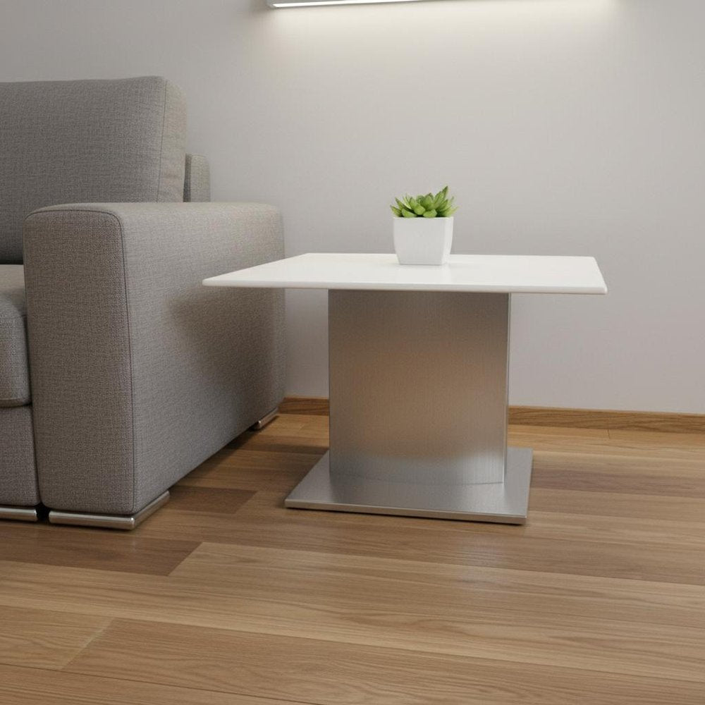 Distinctive in style the 22-inch white and silver marble and metal square pedestal end table radiates a versatile charm. Quality construction from the silver metal base combines with white marble of the top to give this table a fresh and updated look. A great accent on either side of the sofa or bed, this adorable end or side table is just what you need. This versatile table is a great accent for most any room. 22-inch h x 21.5-inch w x 21.5-inch d.