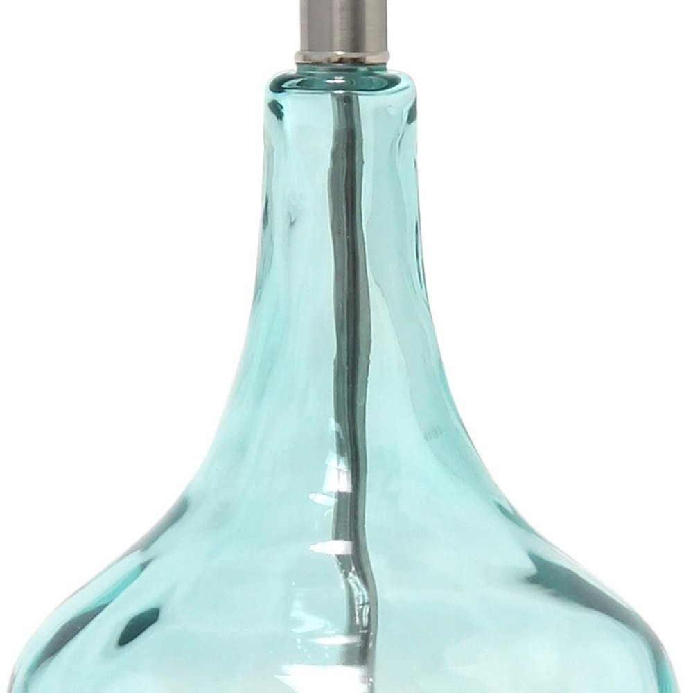 23" Blue And Silver Glass And Metal Novelty Table Lamp With White Drum Shade