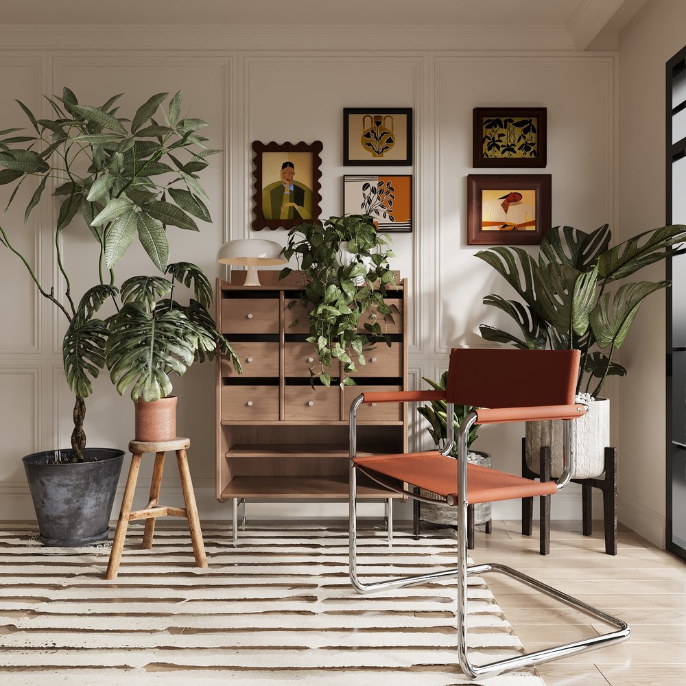 Unique and decorative, this 23-inch silver and terra cotta leather and stainless steel arm chair will leave a lasting impression. Inspired by mid-century modern design, this timeless classic features a shiny silver stainless steel base with genuine leather stretched across the back, the seat, and wrapped on the armrests. This versatile chair can be used around the table for dining, around the conference table for a meeting, or as an accent chair in the living room, bedroom, lounge, or office. 31.30-inch h x 22.95-inch w x 23.62-inch d.