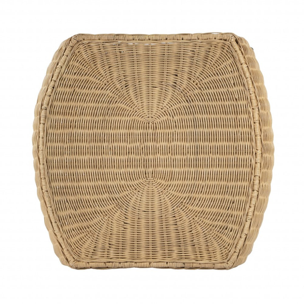Show off your exquisite taste with this 24" natural brown rattan round end table with shelf. Sturdy construction from woven rattan and iron give this table a unique look with tropical vacation villa vibes. Includes a single open shelf for handy storage or display space. A great accent on either side of the sofa or bed, this adorable end or side table is just what you need. You can match it with other pieces to get the ideal look for your place. 23.75" H x 24.25" W x 28" D