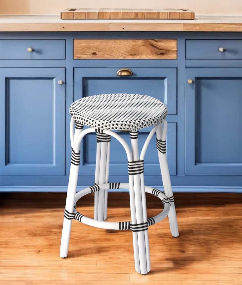 24" Black and White Rattan Backless Counter Height Bar Chair