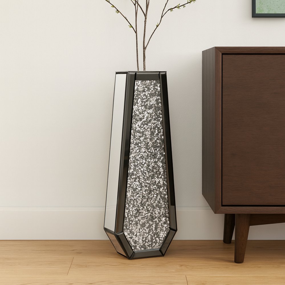 24" Black Crystal Glass Floor Vase With Faux Crystals