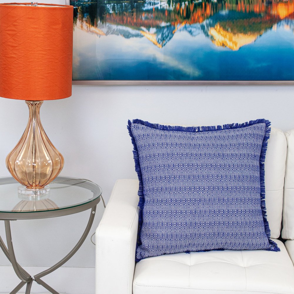The perfect complement to your sofa, favorite chair, or bed, this 24-inch blue and white striped cotton throw pillow with fringe is a great decorative accent. The blue and white coloring of the extremely durable and long lasting cotton will add dimension and texture to your space. Charming decorative fringe give this design texture along with a hand-crafted look and feel. This soft polyfill filled pillow not only is decorative but made to be comfy and cozy all day long. For anyone that loves to decorate or accent their space with color and texture. Decorative pillows are a great way to change up the look and feel of your space easily and quickly. 24-inch H x 24-inch W x 7-inch D