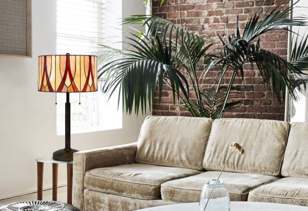 Bring of level of elegance and freshness to your space with this high quality 24" bronze metal two light table lamp with red and ivory drum shade. The base of this lamp is made of bronze metal. The red and ivory drum glass shade is a great compliment to this lamp. This standard table lamp is designed to provide general lighting to the area. The light that this lamp throws is soft and warm to elevate the look of most any space in your home. It is perfect for virtually any decor. 24" H x 14" W x 14" D
