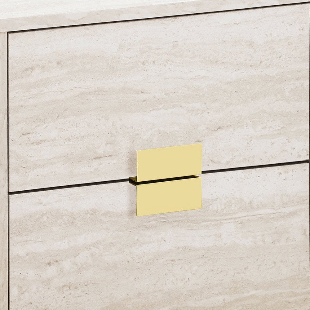 Show off your exquisite taste with this 24-inch gold and beige end table with two drawers. Quality construction from the gold metal base combines with beige manufactured wood of the top to give this table a fresh and updated look. Includes 2 easy open drawers for storage of the small essentials. Side tables are a great way to flank your sofa, use as an accent next to your favorite chair, or can even be used bedside. You can also use it as an entryway table to hold your keys. 23.5-inch H x 18.25-inch W x 12.75-inch D