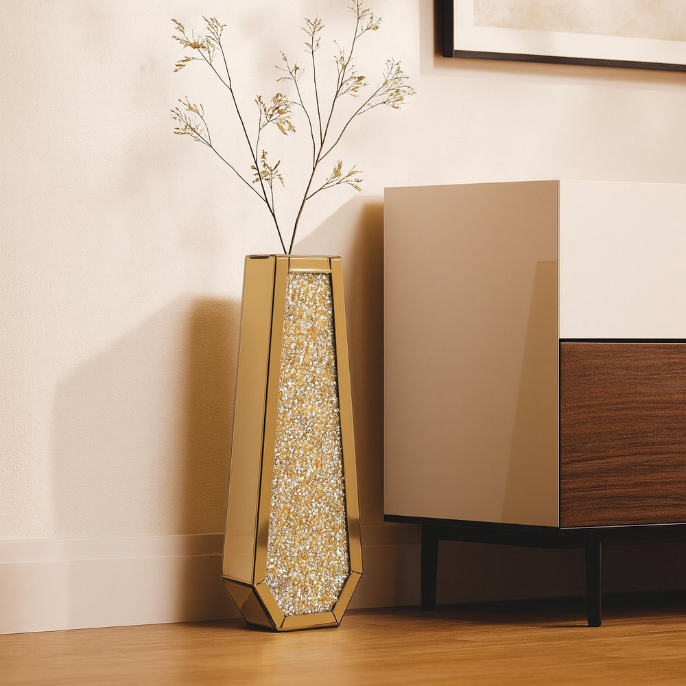 24" Gold Crystal Glass Floor Vase With Faux Crystals