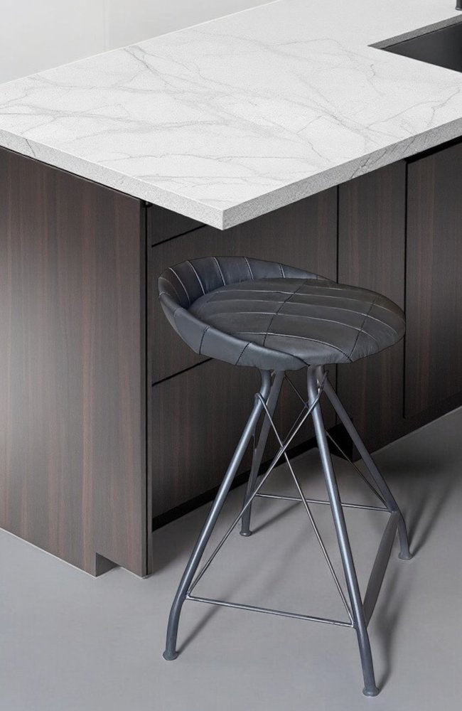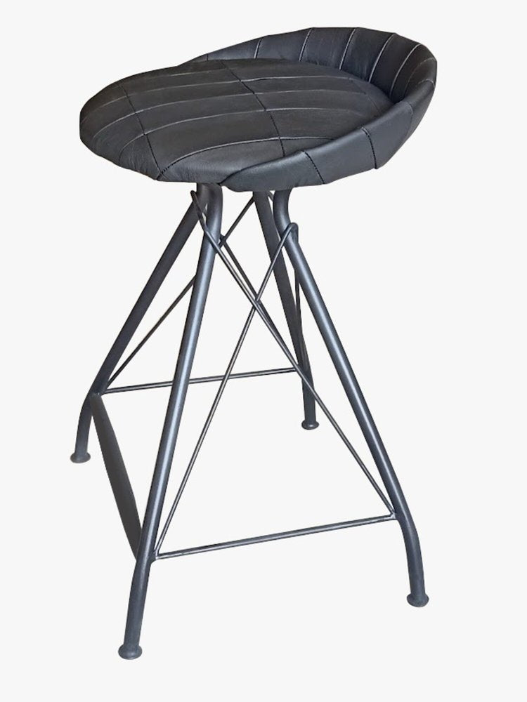 Comfort and design come together nicely in this 24-inch gray leather and iron low back counter height swivel bar chair. The gray coloration runs throughout this good looking iron and leather stool. The round shape of the seat combines with a low_back to give this chair a comfortable and fashionable look. Designed with a footrest for comfort and convenience. 26-inch h x 19-inch w x 17.5-inch d.