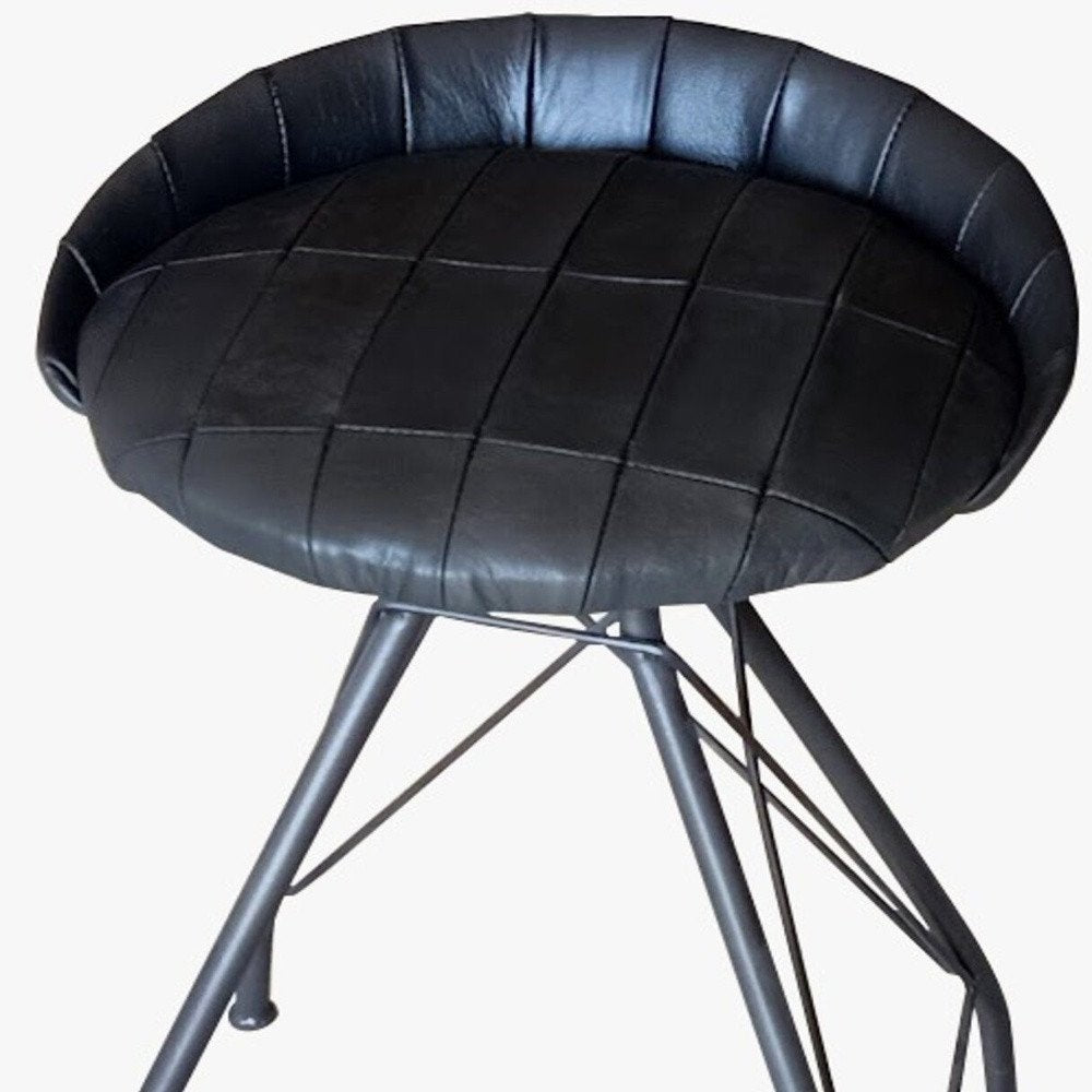 24" Gray Leather and Iron Low Back Counter Height Swivel Bar Chair