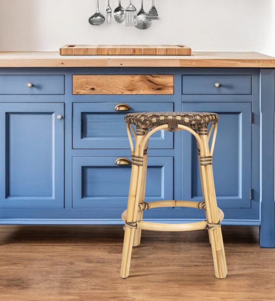 24" Natural and Brown Rattan Backless Counter Height Bar Chair