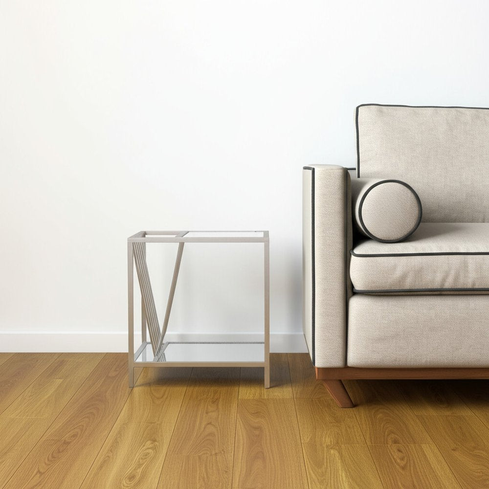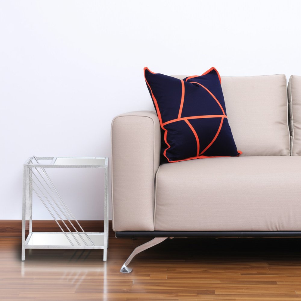 Show off your exquisite taste with this 24-inch silver mirrored glass and iron end table with shelf. The silver coloration runs throughout this good looking iron and mirrored glass table. Includes a single shelf for handy storage or display space. An ideal location for placing your snacks and drinks, and a place to keep your lamp, frames, or other accessories. This versatile table is a great accent for most any room. 24-inch H x 15-inch W x 23-inch D
