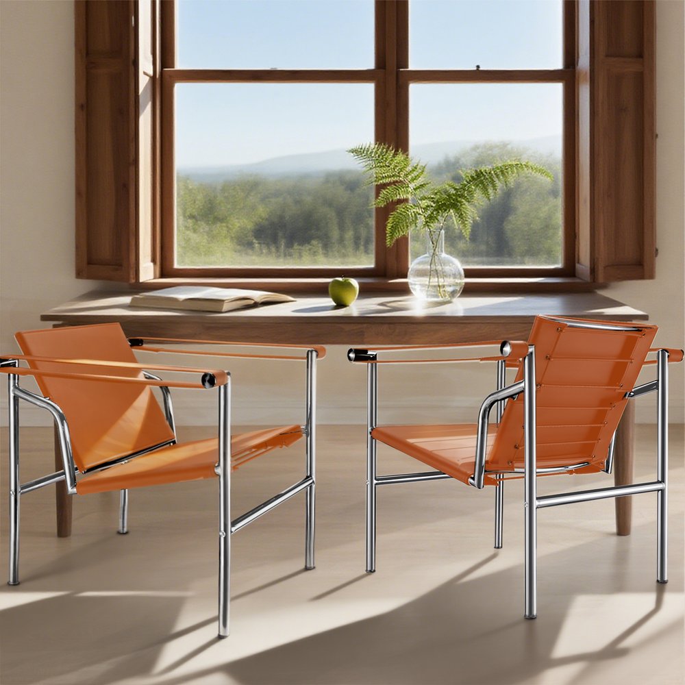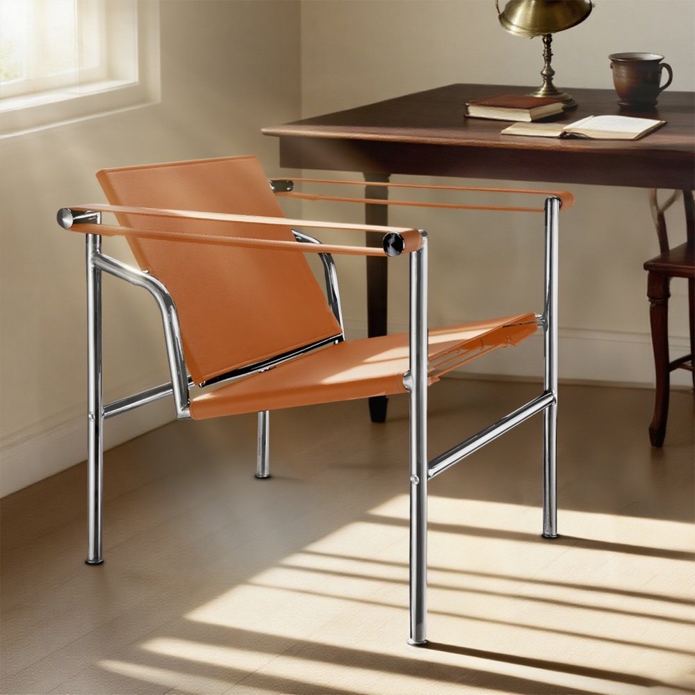 A mix of form and function, this 24-inch terra cotta and silver faux leather and stainless adjustable back arm chair will bring a good looking and usable accent to your space. This sturdy faux leather upholstered arm chair comes in a chic white and silver two-tone color to give your space just the right look. Mixing form and function masterfully, this modern and contemporary look combines with an adjustable backrest to give you the ultimate in a good looking and versatile arm chair for most any room in the home or office. 24.80-inch h x 23.62-inch w x 24.41-inch d.