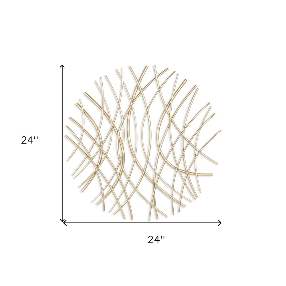 24" X 24" Gold Metal Circle Abstract Hanging Dimensional Sculpture