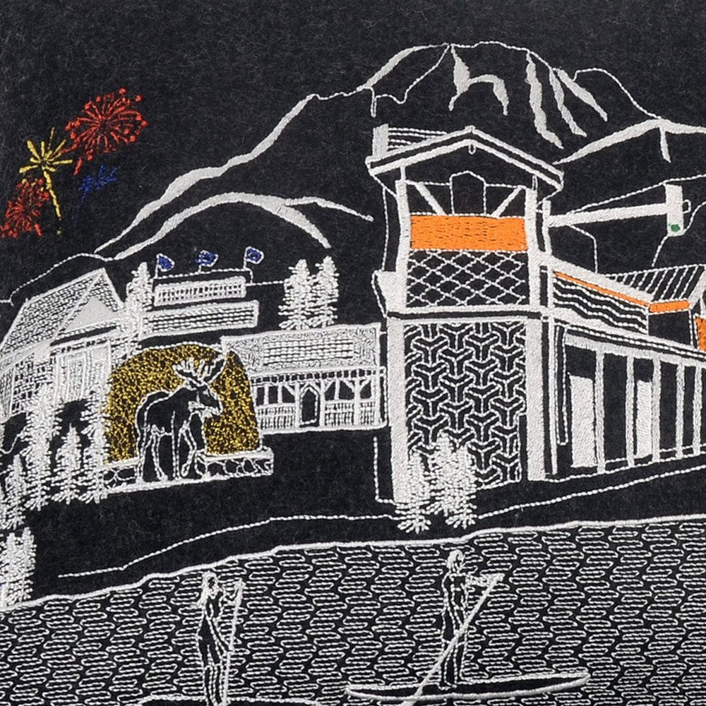 Showcase this famous city, with our Black Color Jackson Nighttime Skyline Standard Size Lumbar Decorative Pillow. The Nighttime view of Jackson, is picture perfect. The gorgeous art features many famous landmarks and references for this destination city, rendering a modern whimsical way to bring this iconic cityscape to life. Made of a wool/nylon blend, this high quality stitched decorative pillow features white on black embroidered artwork mixed with pops of color that highlight important and recognizable icons from this popular Wyoming city known for its outdoor sports. This pillow makes a great gift, decorative accent and conversation piece. 14-inch H x 25-inch W x 4-inch D