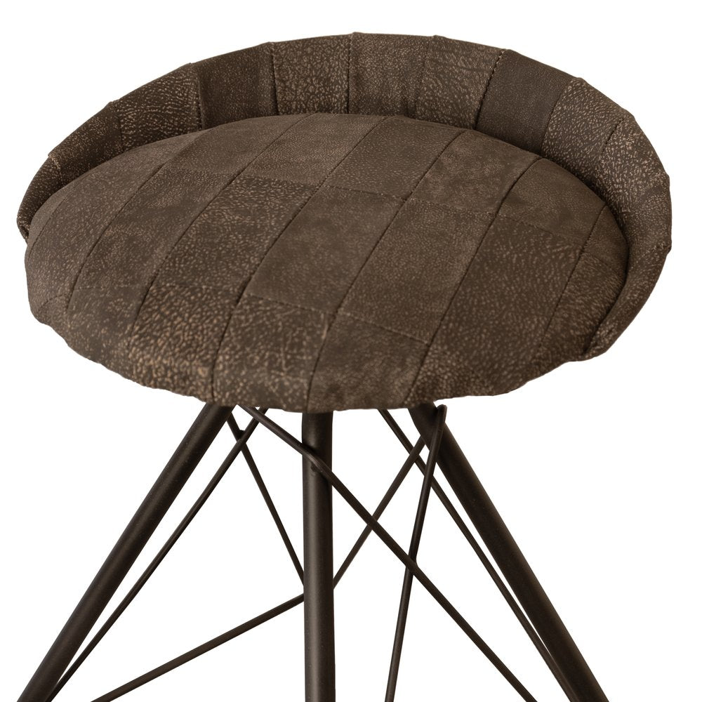 With this 25-inch brown and black leather and iron swivel low back counter height bar chair you can add design and extra seating to your space. The brown leather seat of this stool is a nice contrast to the high quality, black iron of the base. The round shape of the seat combines with a low back to give this chair a comfortable and fashionable look. Designed with a footrest for comfort and convenience. 25.5-inch H x 19-inch W x 17.5-inch D