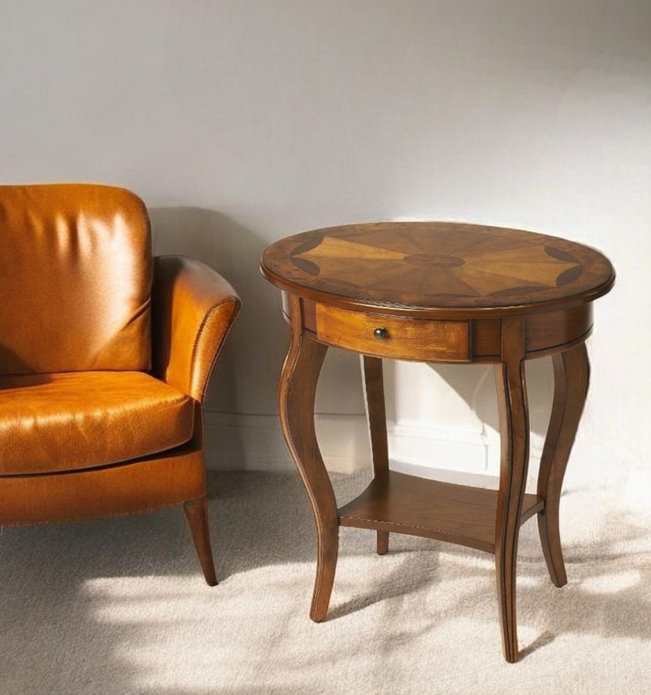 Add handsome, fashionable design to your living space with this 25-inch brown wood oval coffee table with drawer and shelf. This table is made from solid and manufactured wood in a brown color throughout the base and top. Help to keep your space organized with the included single shelf. This oval table is an updated take on a classic. If you're looking for something that can fit into a living area, bedroom, or office, this coffee table is for you. 26.25-inch h x 24.5-inch w x 18.25-inch d.
