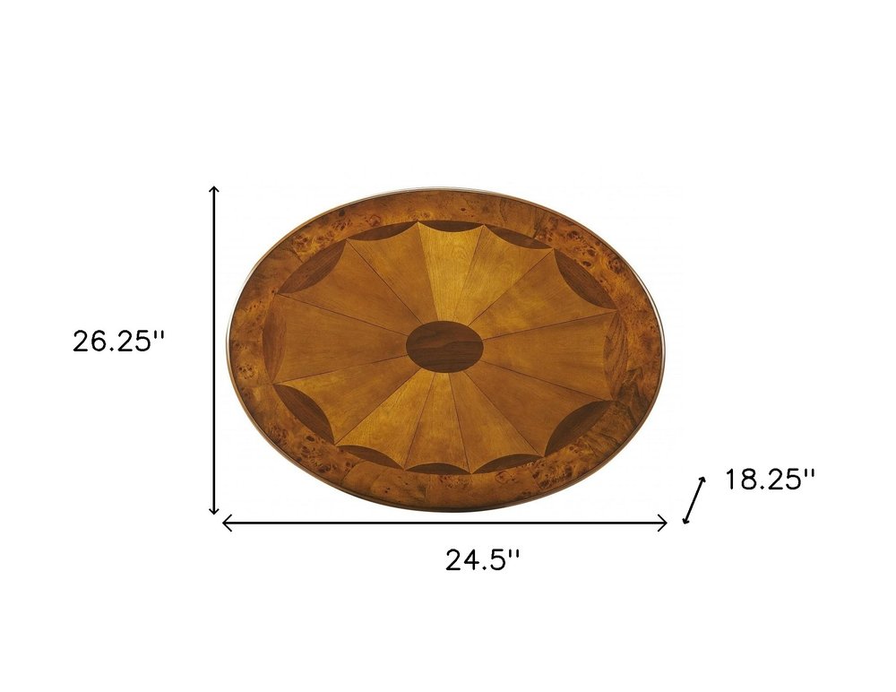 25" Brown Wood Oval Coffee Table With Drawer And Shelf