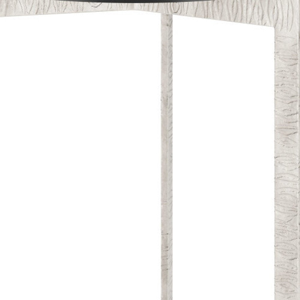 25" White And Silver Marble And Aluminum Round Cross Legs End Table