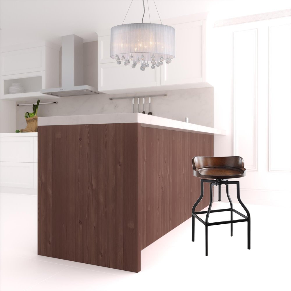 Bring a trendy bar vibe to your space, with this 29" chestnut steel swivel backless adjustable height bar chair with footrest. The chestnut solid wood seat of this stool is a nice contrast to the high quality, black steel of the base. A backless mixed with a bucket shaped seat makes this chair both comfortable and fashionable. Designed with a footrest for comfort and convenience. 29.25" H x 17" W x 16.25" D