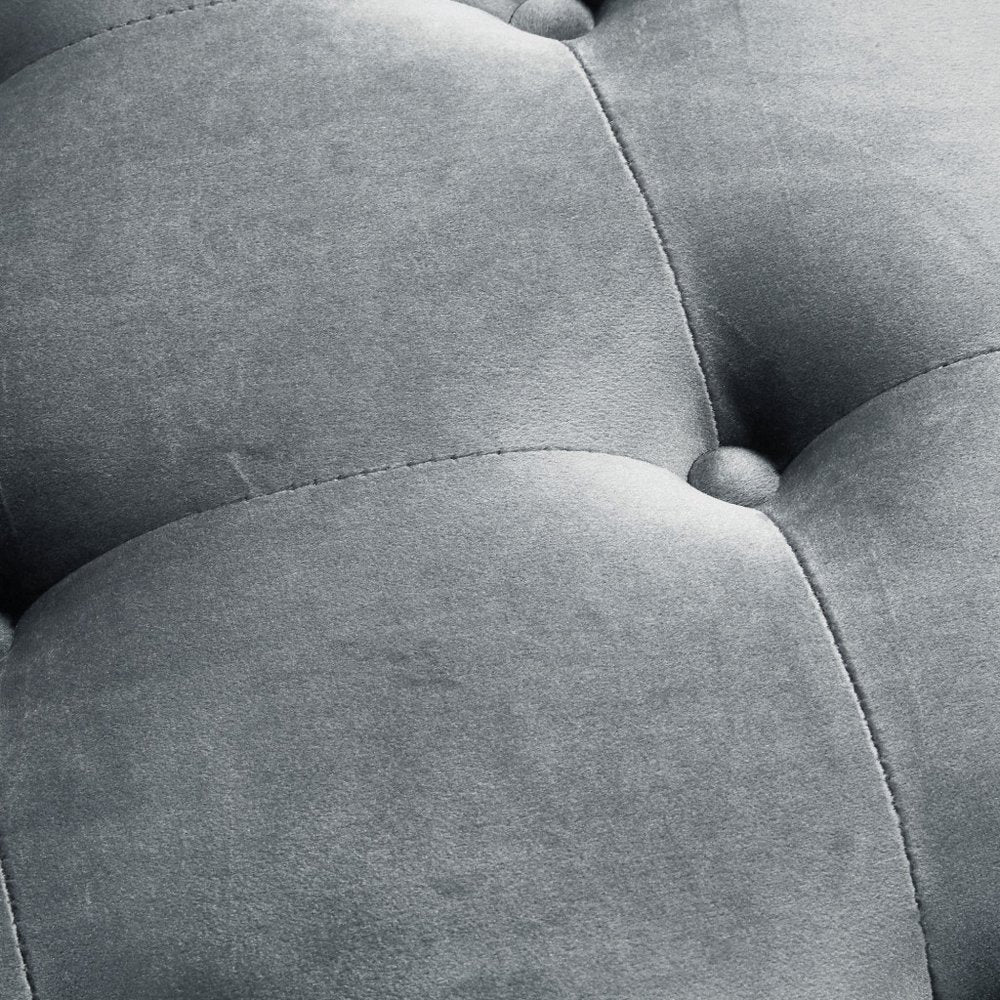 Fill your living room, bedroom, or office with fashionable seating options with this 26-inch gray and black velvet tufted side chair. Built to last this side chair is finished in solid gray velvet to give your room a great update. The sturdy inner frame is built with high quality plywood, featuring a cushion back that is accented with soft and comfortable cushioning. The tufted cushions add fine designer detailing. Nailhead trim gives this chair a refined look that adds additional texture and visual interest. 32.5-inch h x 26-inch w x 30.5-inch d.