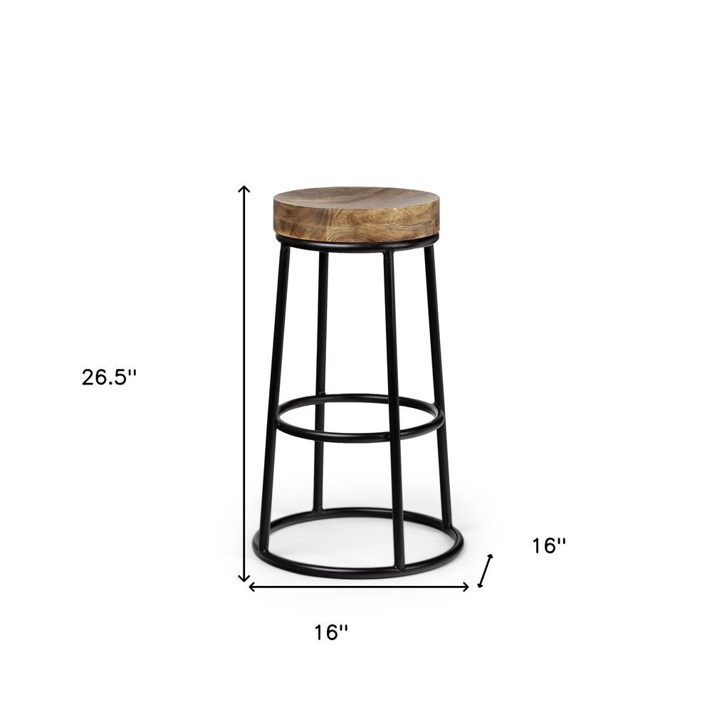 The perfect way to add some extra seating in your home, this 26-inch natural and black solid wood and iron backless counter height bar chair will elevate the look and vibe of your room. The black coloration of the high quality cylindrical iron base marries nicely with the natural solid wood seat. Good looking and stylish, this chair features a round shaped seat with an armless and backless design for the ultimate in comfort and enjoyment. 26.5-inch h x 16-inch w x 16-inch d.