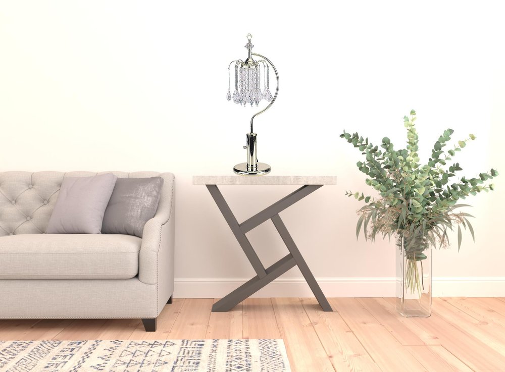 Embrace the good life with this hard working and stylish 27" gold metal chandelier faux crystal table lamp. A gorgeous gold metal base bring just the right amount of pizzazz to this fabulous lamp. The gold coloring infuses a warm and rich tone to your space. Use this lamp anywhere and elevate the look of the whole space. The perfect lamp to create just the right natural and soothing light in your space. 27" H x 12" W x 12" D