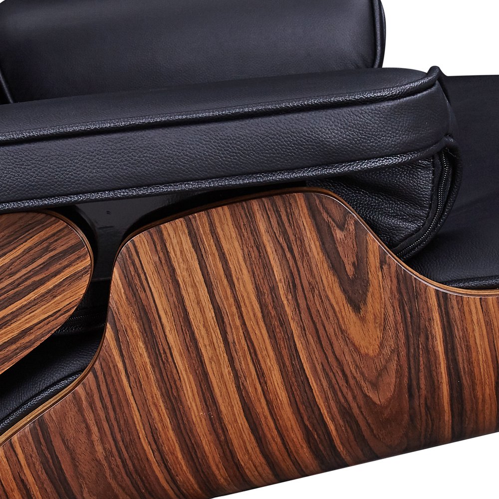 Give your living room, bedroom, or office a facelift with this beautifully crafted 28-inch black and rosewood tufted genuine leather lounge chair with ottoman. Built to last, this lounge set features a warm rosewood reddish brown faux wood frame that is finished with black genuine leather to give your room a great update. The mix of style, color, and button tufted leather adds a a touch of mid-century modern to your space. Perfect for relaxing after a long day, this heavy duty chair also features a swivel function and includes a comfy ottoman for the ultimate in relaxation. 29.00-inch h x 28.30-inch w x 20.50-inch d.