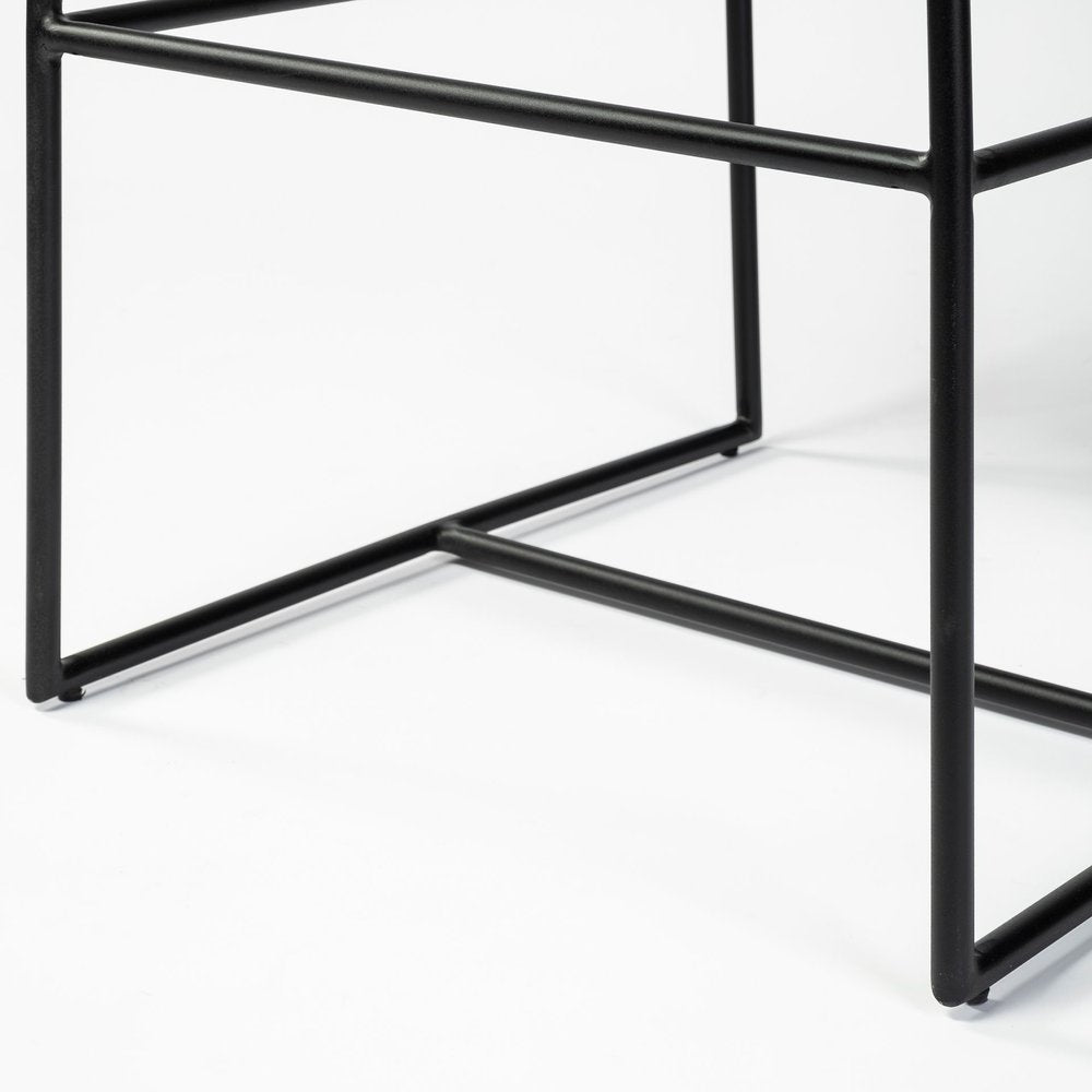 29" Beige and Black Fabric and Metal Counter Height Bar Chair