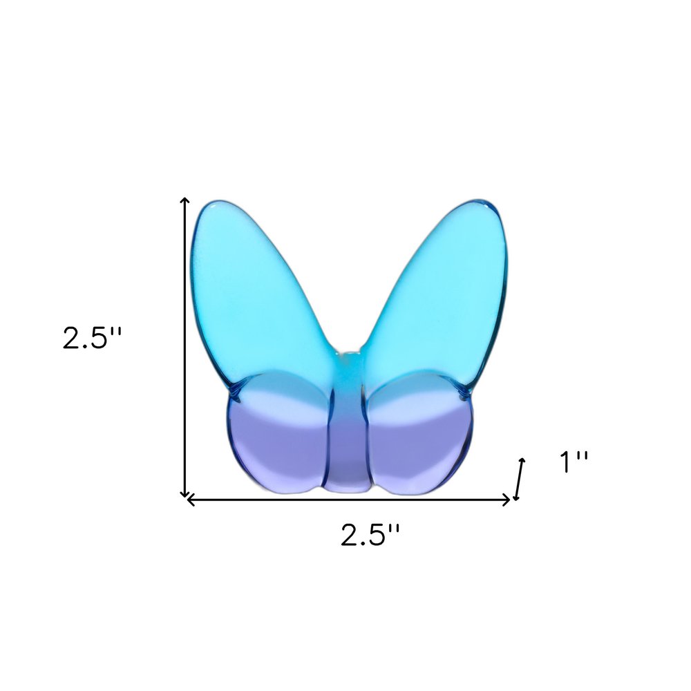 This 3-inch blue and purple crystal butterfly figurine tabletop sculpture will add a beautiful decorative accent to your decor. This blue and purple colored piece is made from high grade crystal. Inspired by one of nature's most revered icons, this pretty butterfly inspired sculpture will be a beautiful and special addition to your room's decor. This pretty butterfly brings a touch of elegance and some outdoor beauty to your space. Great to use on its own or mix with other decorations for the perfect look. 2.5-inch h x 2.5-inch w x 1-inch d.
