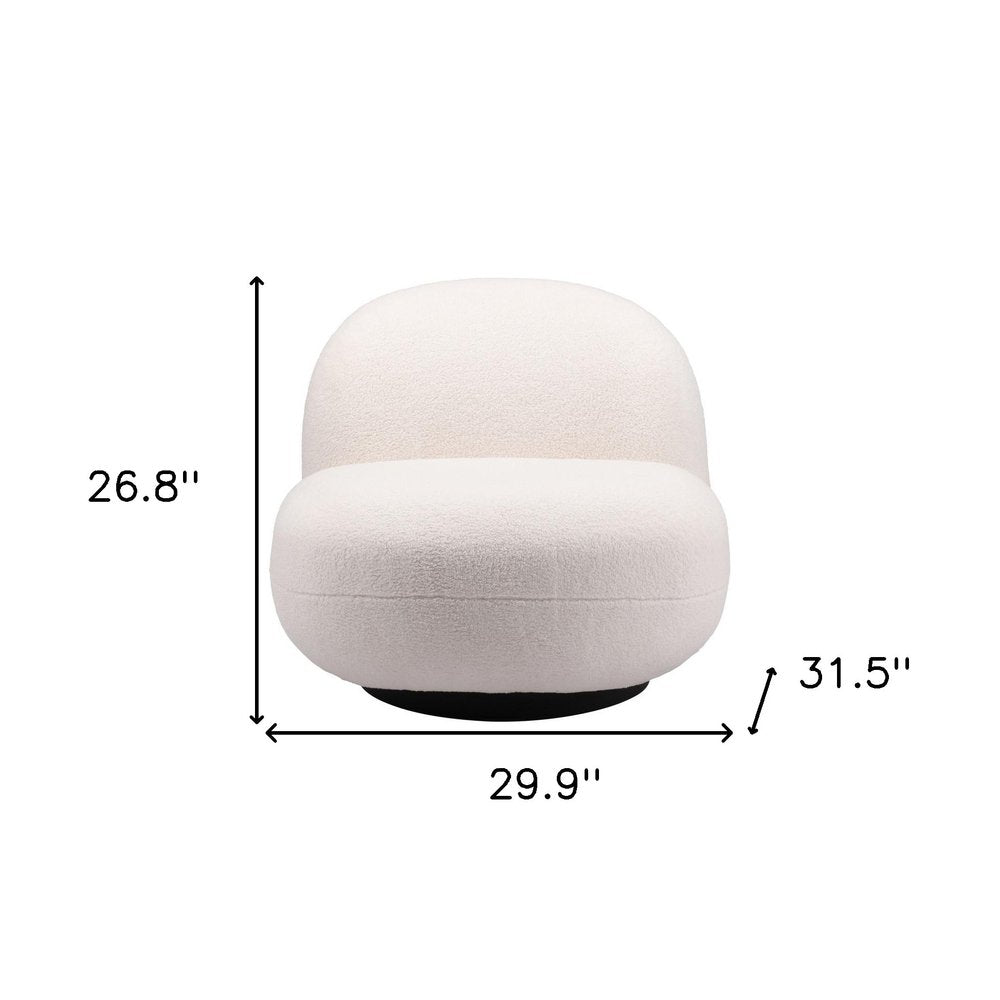 This 30-inch cream and black faux shearling and upholstered slipper chair is the perfect decorative yet functional accessory for your home. This gorgeous solid color cream slipper chair is masterfully upholstered in durable faux shearling and 100% polyester. The high quality manufactured wood inner frame flaunts a fixed back that is complimented by soft and comfortable cushioning. 26.8-inch h x 29.9-inch w x 31.5-inch d.