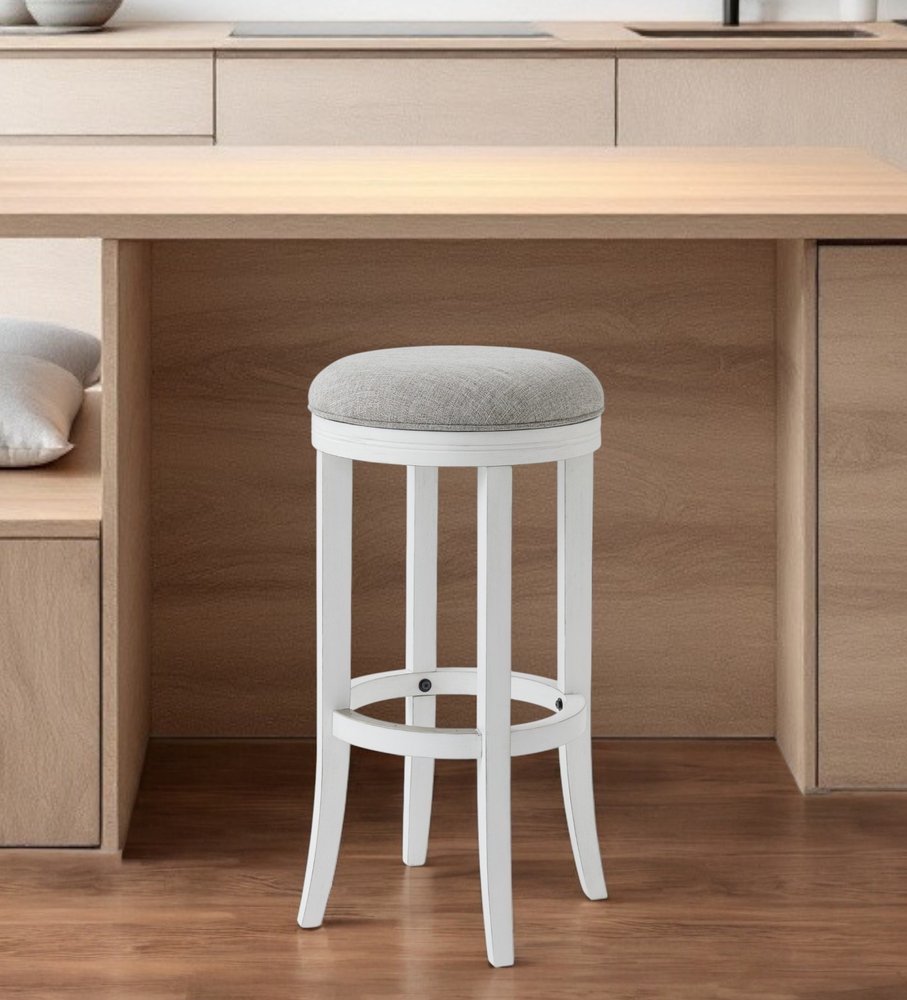 30" Gray And Antiqued White Solid Wood Swivel Backless Bar Height Bar Chair