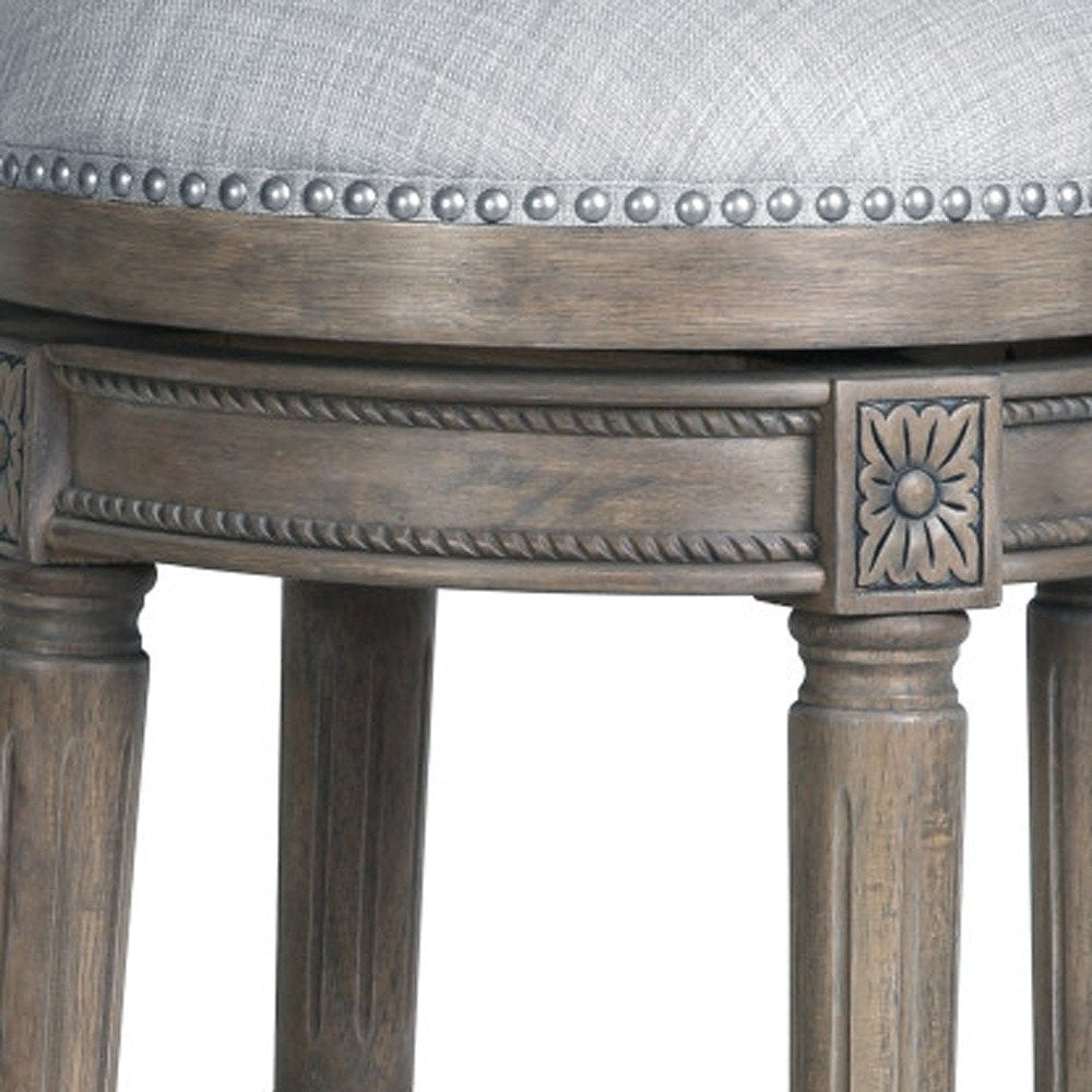 31" Gray Solid Wood Swivel Backless Bar Height Bar Chair