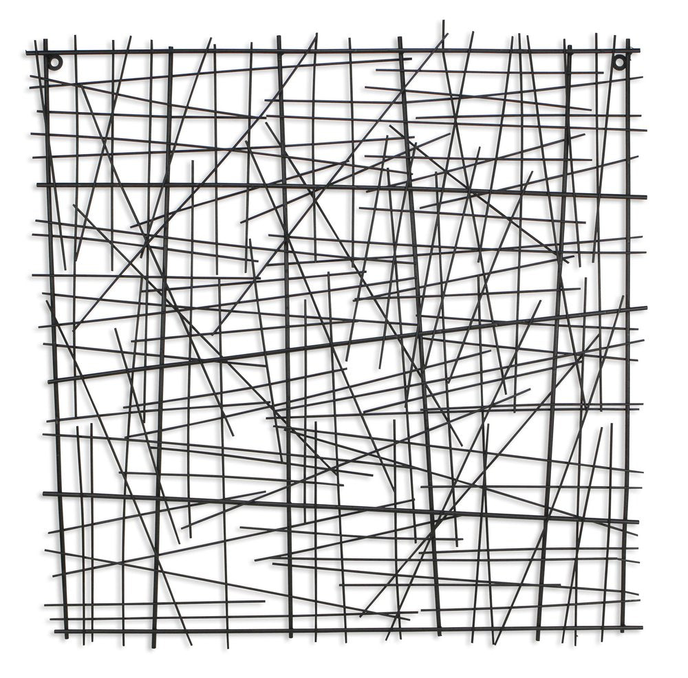 The 32-inch x 32-inch black handcrafted abstract lines metal hanging dimensional sculpture is the perfect decorative accessory for your home. Adding this hanging wall art to your space to make your room feel more finished and attractive. Utilize this opportunity to create a focal point in the room with this fabulous wall decor option. 31.5-inch H x 31.5-inch W x 0.75-inch D