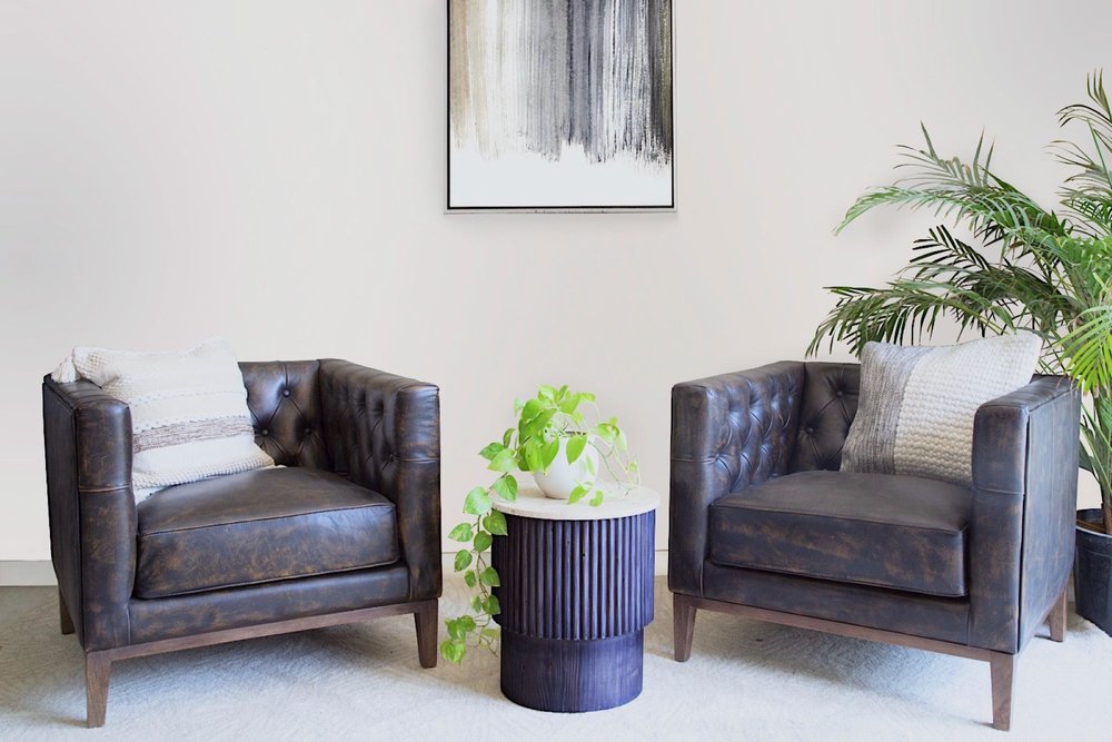 This 33-inch brown and black antiqued top grain leather tufted club chair is the perfect decorative yet functional accessory for your home. This sturdy top grain leather club chair comes in brown and black to give your space just the right look. Giving the chair stability and structure, the inner frame is constructed with high quality solid wood, includes comfy armrests, and features a fixed back that comes complete with soft and comfortable cushioning. The tufted cushions add fine designer detailing. 33-inch H x 33-inch W x 31.5-inch D