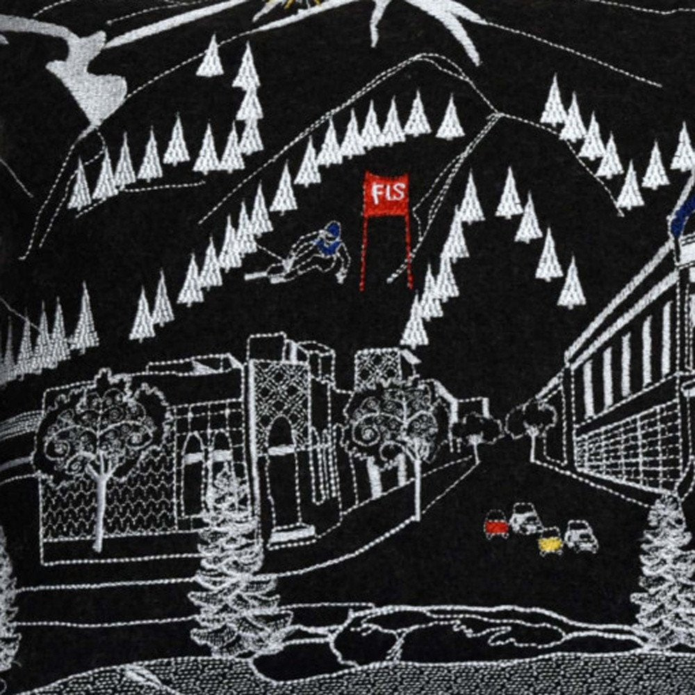 Showcase this famous city, with our Black Color Aspen Nighttime Skyline Queen Size Lumbar Decorative Pillow. The Nighttime view of Aspen from the Roaring Fork River is picture perfect. The gorgeous art features many famous landmarks and references for this destination city, rendering a modern whimsical way to bring this iconic cityscape to life. Made of a wool/nylon blend, this high quality stitched decorative pillow features white on black embroidered artwork mixed with pops of color that highlight important and recognizable icons from this popular Colorado city known for its snow sports, fine dining, and resorts. This pillow makes a great gift, decorative accent and conversation piece. 14-inch H x 35-inch W x 4-inch D